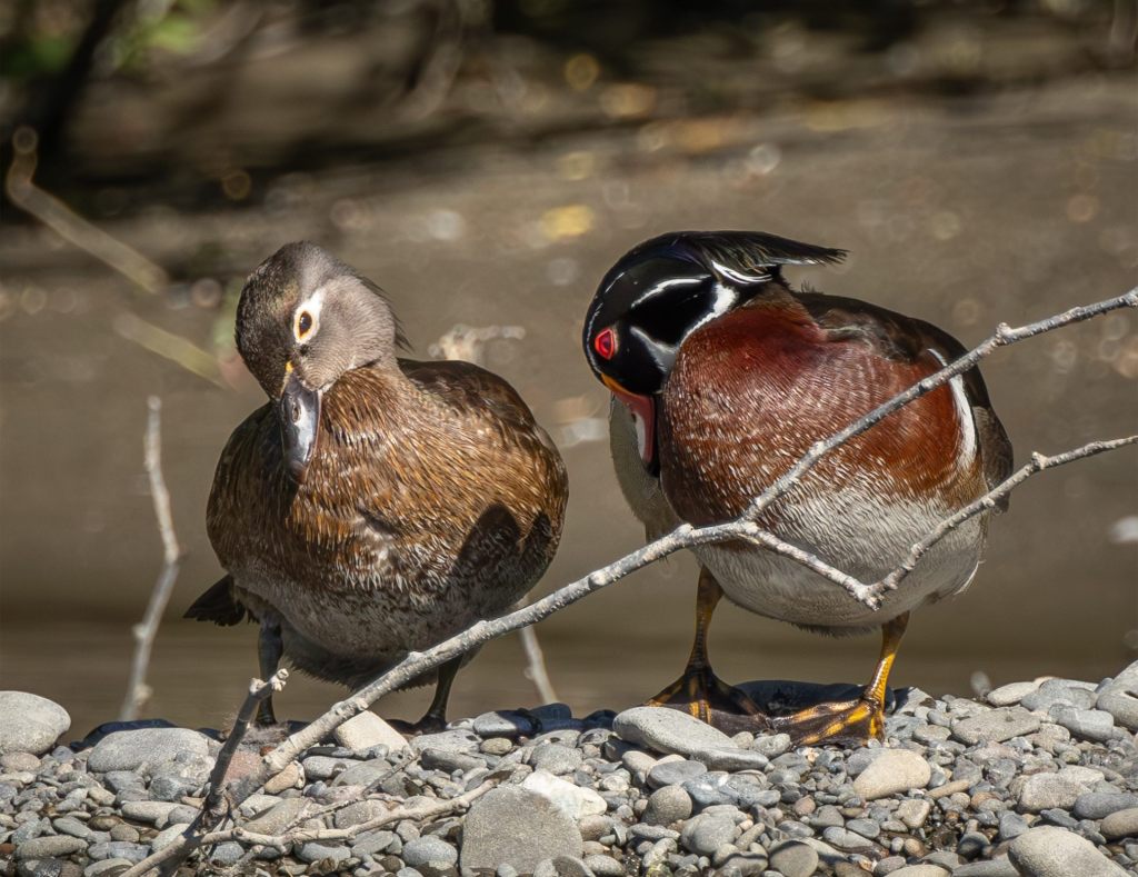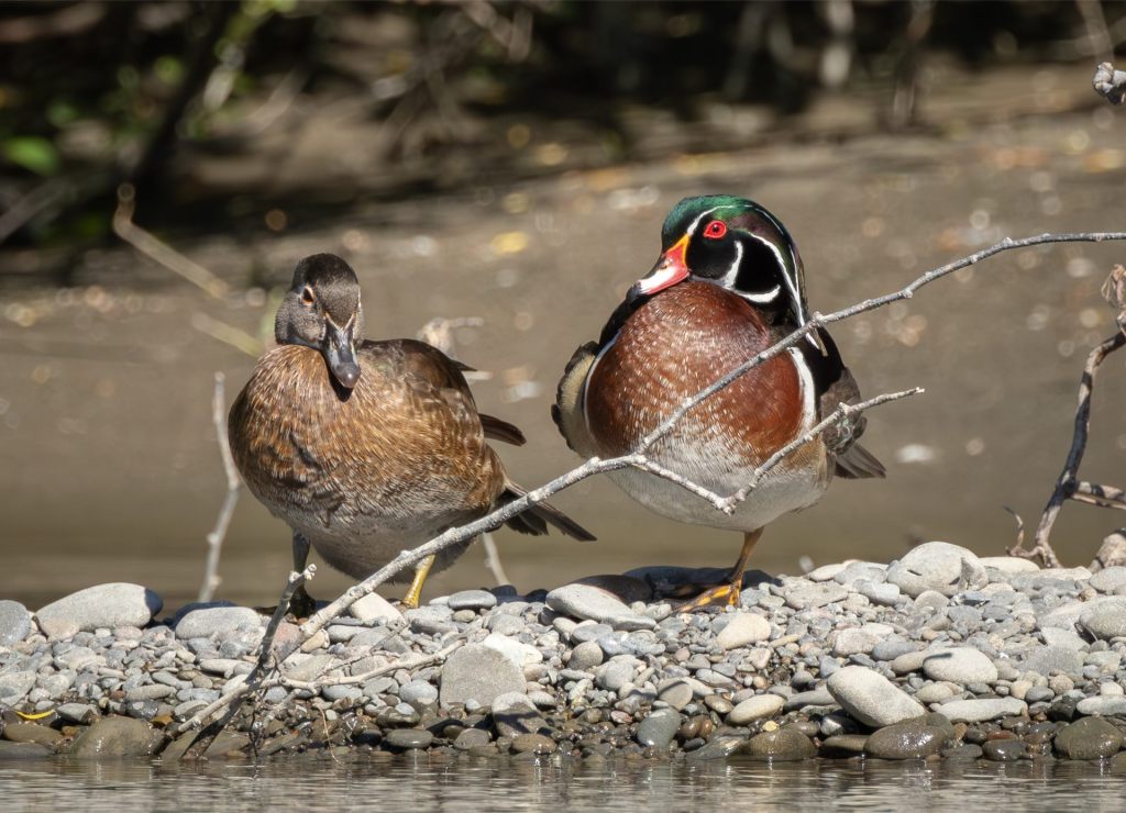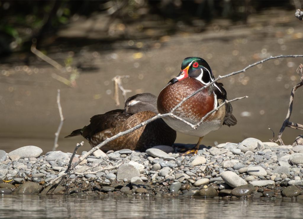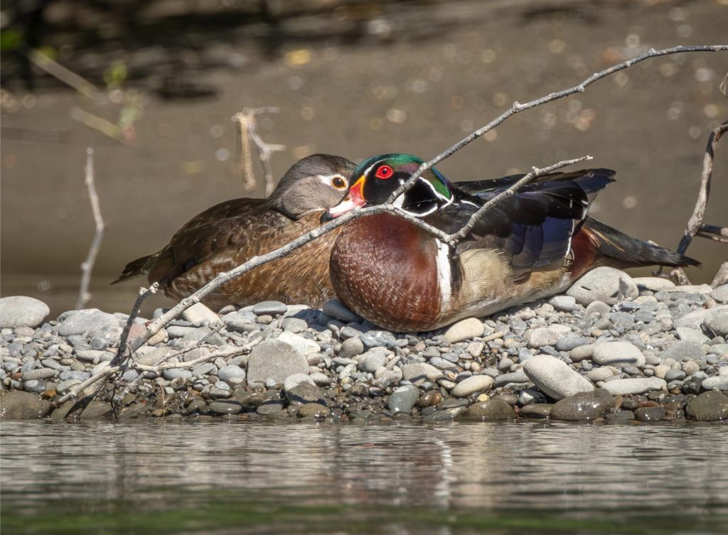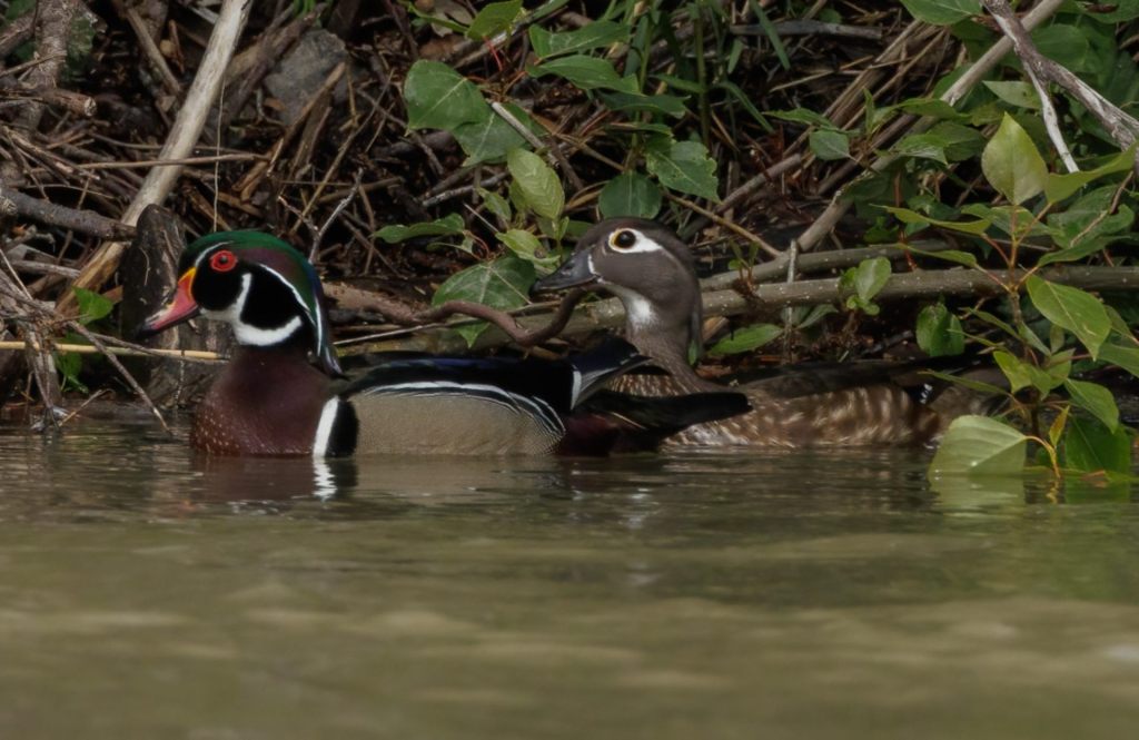 In 50 years of observing wildlife on this little stretch of the South Fork of the Eel, it has always been a special occasion when Wood Ducks visit. I have only seen a family with young once, many years ago, but the fact that I have seen this pair multiple times this past spring has got my hopes up that perhaps they are nesting nearby. Wood Ducks nest in tree cavities, and I have noticed this pair flying into wooded areas several times recently.