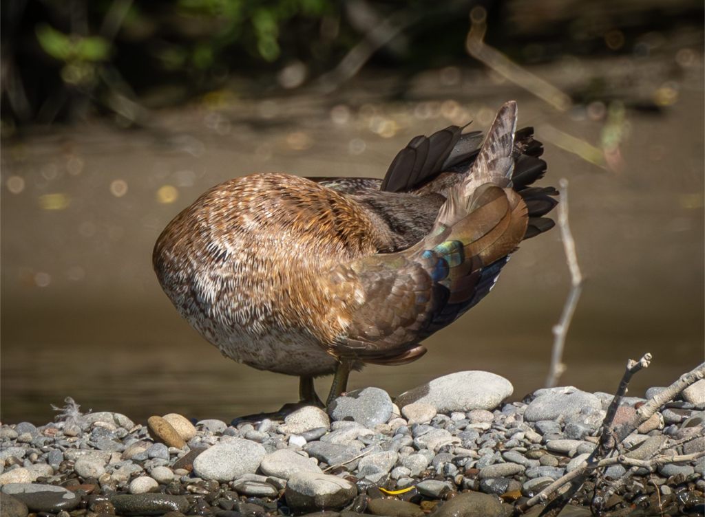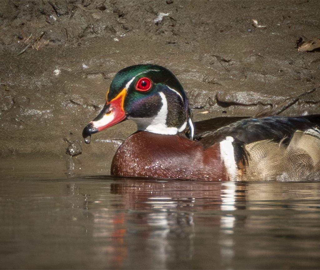While the male Wood Duck’s showy plumage is well-known, the female has her own far more subtle beauty, and the iridescent speculum is a focal point.