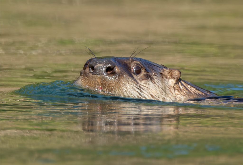 After spotting the Beaver and sharing my excitement, a few skeptical friends asked me how I knew it wasn’t the much more commonly seen North American River Otter. The beaver is a member of the rodent family and even though all I saw was its head before it dove under water not to be seen again, the head shape is not at all like the that of the otter who is a member of the weasel family. Beavers are vegetarians and otters are fierce hunters of anything living in the water and occasionally will take small mammals on land. Below you can compare the two when all you see is the head above water, concealing the well-known flat tail and chunky body of the beaver and the sleek torso and long tapered tail of the otter.