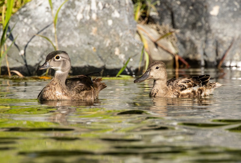 Juvenile Wood duck (left) with juvenile Cinnamon Teal (right)