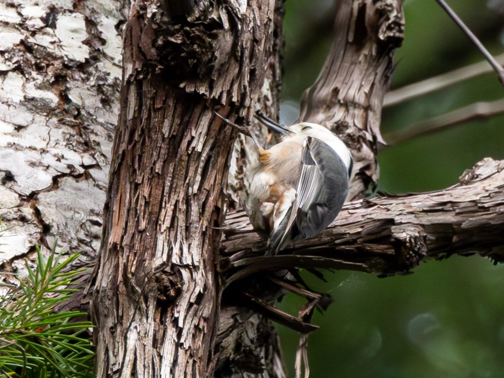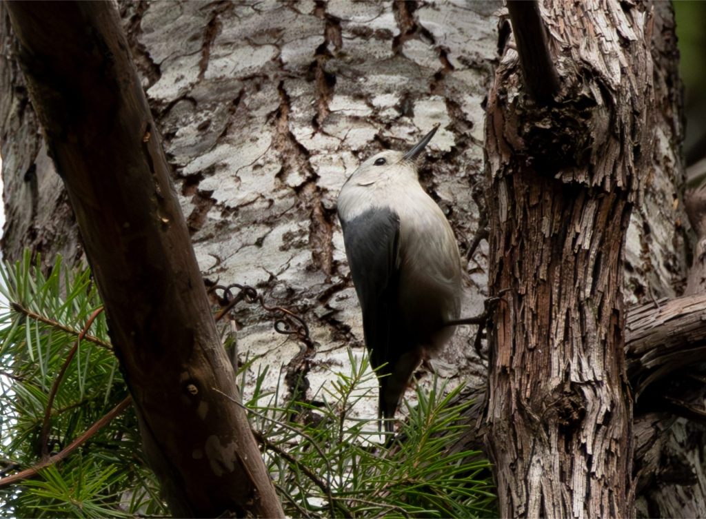 This video shows the White-breasted Nuthatch working over a conifer branch for food.