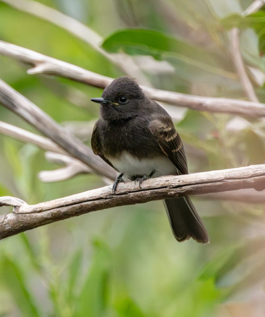Black Phoebe juvenile. These year-round resident flycatchers are often seen at the river.