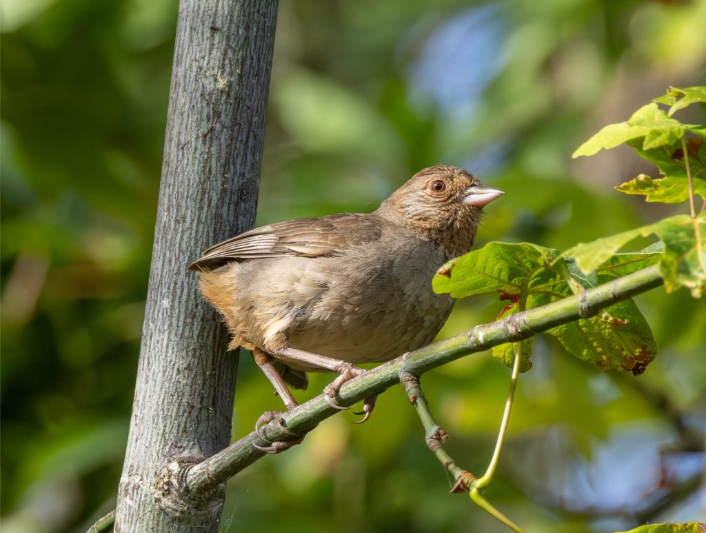 This apparently very lucky California Towhee is missing its long tail feathers.