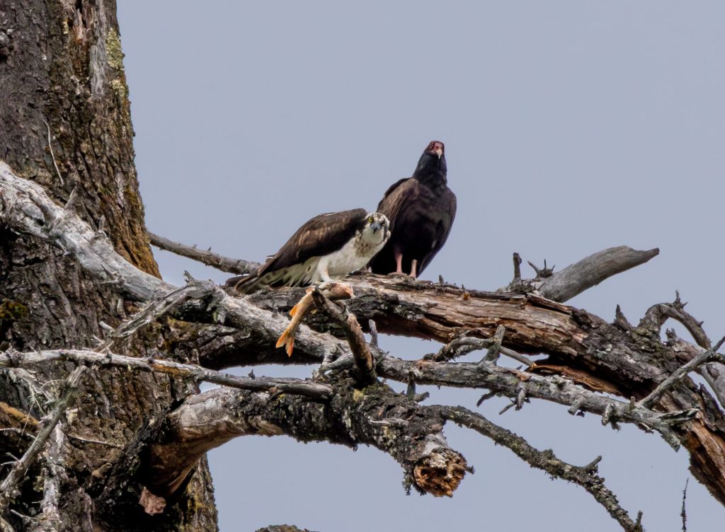 Sure enough, a Turkey Vulture arrived and seemed prepared to wait forever for any chance of leftovers. The Osprey did not feel threatened and continued to eat.