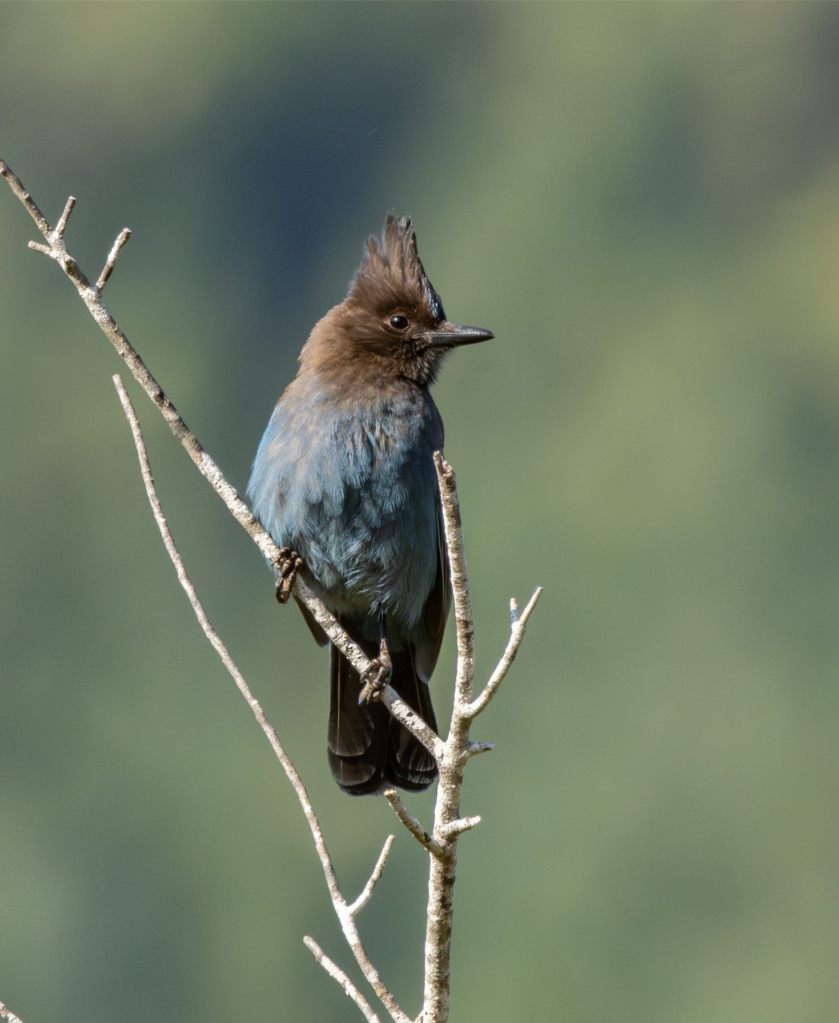 The usually feisty and assertive Steller’s Jay strikes a pensive pose in pre-dawn light.
