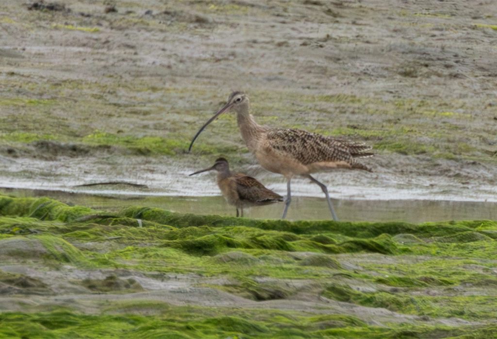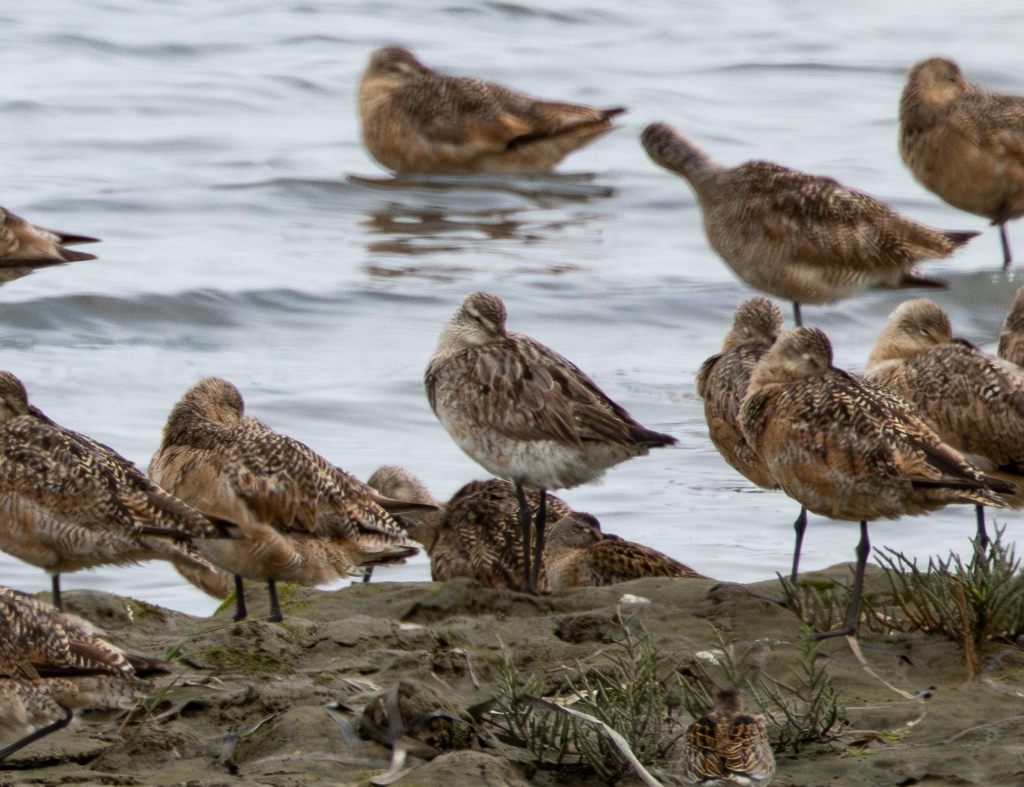 Through diligent searching through hundreds of Marbled Godwits, this vagrant rarity, the Bar-tailed Godwit, was found by birding friend Max Brodie.
