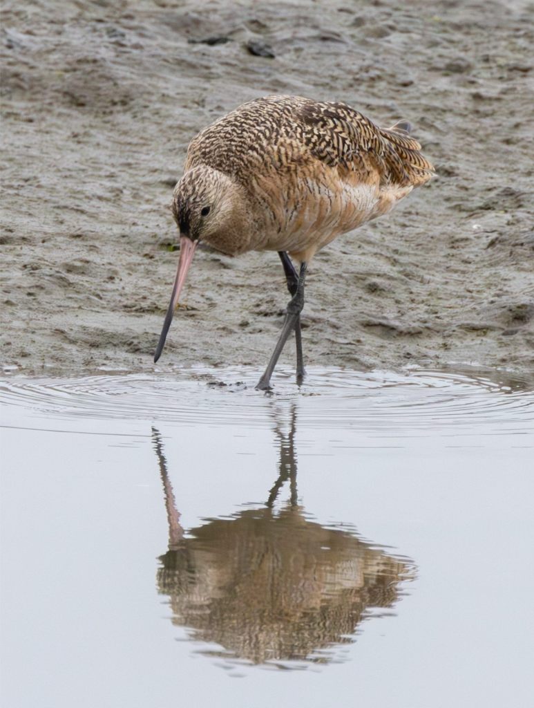 After meeting up with friends we were soon alerted by text to the sighting of a special bird and headed to the Samoa Bridge to get a look at this rare creature. A Bar-tailed Godwit had wandered off its migration route that typically goes from the Alaskan tundra to New Zealand and Australia, sometimes along the coast of east Asia and sometimes over the open Pacific. Bar-tailed Godwits take the longest known non-stop migratory flight of any bird. They travel from arctic breeding grounds all across the globe from Alaska to Siberia to wintering grounds in the southern hemisphere, up to 7,000 miles one way, without stopping to feed. To prepare beforehand this species fattens up and shrinks the internal organs not needed for the journey. Those organs will be regrown at the destination.