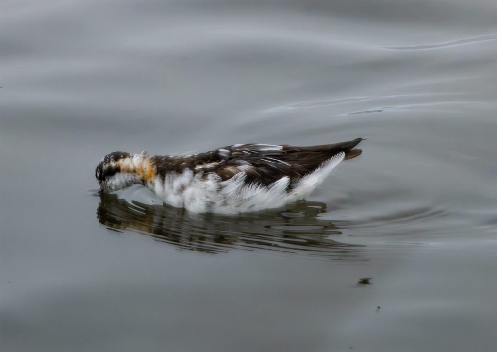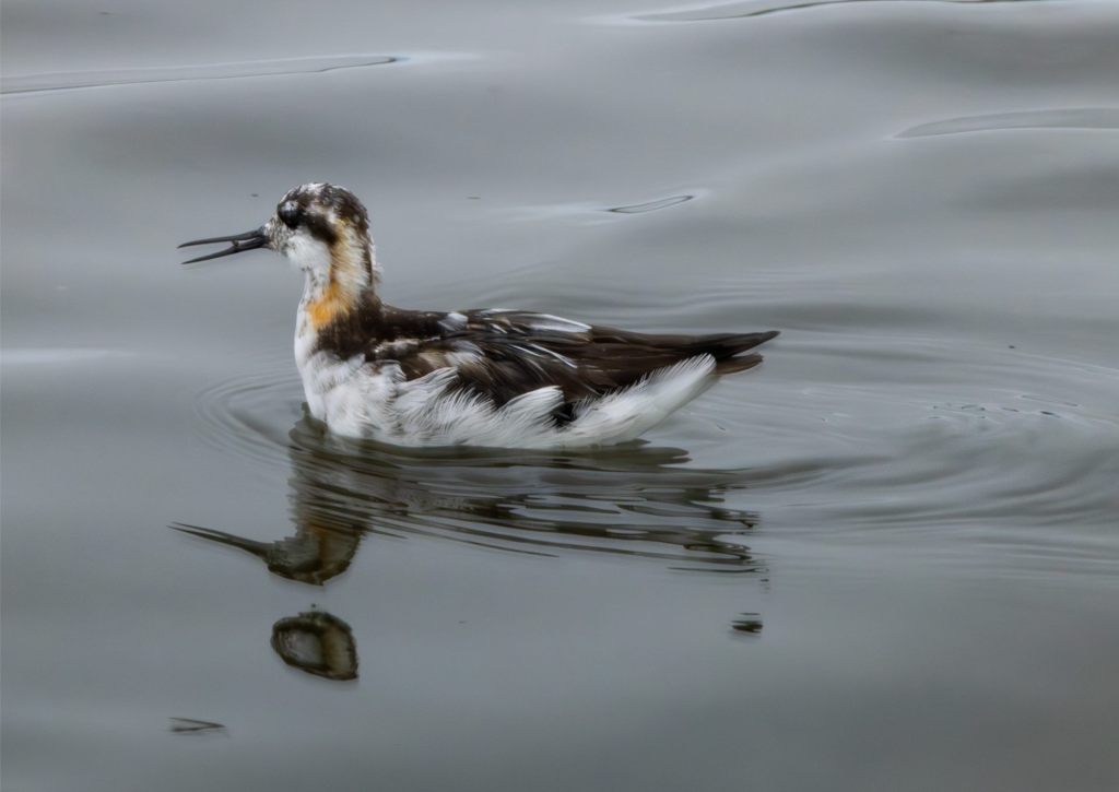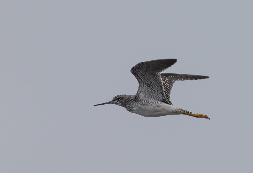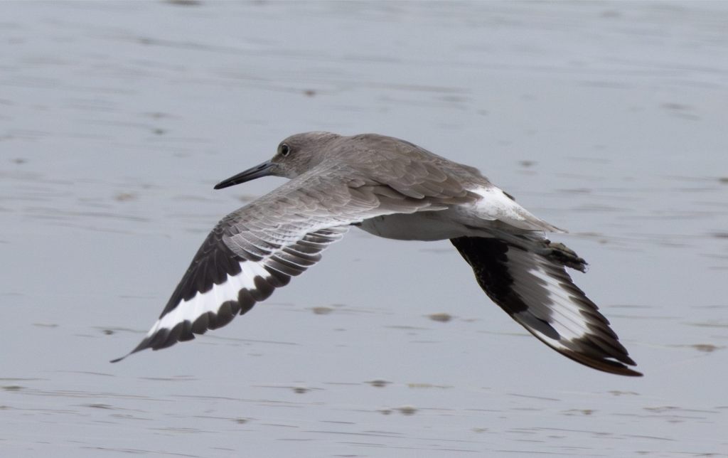 Semi-palmated Plovers run along the muddy shore and stop to probe for food.These birds measure about 6-7 inches long. They eat insects, spiders, worms and pretty much anything else that wiggles.Their much larger cousin the Killdeer is widespread throughout Humboldt and a familiar bird along the river. They both do the fake broken wing dance to draw potential predators away from their young.The beautiful wings of the Black-bellied Plover. Black-bellied Plover on the left and Whimbrel on the right. This is a Red-necked Phalarope, one of three species in the family, all of which exhibit gender role reversal with the females wearing brighter colors and initiating courtship while the males do most of the domestic duties of incubating the eggs and tending the young.Phalaropes float in shallow water and probe for food, sometimes spinning in circles to create a whirlpool that brings prey to the surface.A tiny catch.This Greater Yellowlegs shows off the colorful legs it was named for. These birds are widepsread in Humboldt all winter and occasionally appear on the river, although you might hear the loud plaintive call before you see one.Much less common is the Lesser Yellowlegs, a daintier version of its cousin.Juvenile Lesser Yellowlegs showing fresh sharp plumage.The Willet showing its striking black and white wings in flight. This bird is easy to see around the Bay all winter, but is easy to miss when its wings are closed.The tiny Least Sandpiper, one of the “peeps”, maxes out at just under 6 inches and sports the only green legs in the group.Juvenile Western Sandpipers are just a tad larger and have black legs and droopy black bill.Long-billed Curlew with Short-billed Dowitcher. Both of these species winter in Humboldt. The Curlew is North America’s largest sandpiper at up to 26 inches and uses its long curved bill to probe deep into the mud for food. The Dowitcher measures about 10-11 inches, and probes the mud, moving its bill up and down to look for food.Long-billed Curlew.Marbled Godwit. One of the most well known winter birds around Humboldt Bay, a large sandpiper with a long, bi-colored, slightly upturned bill.