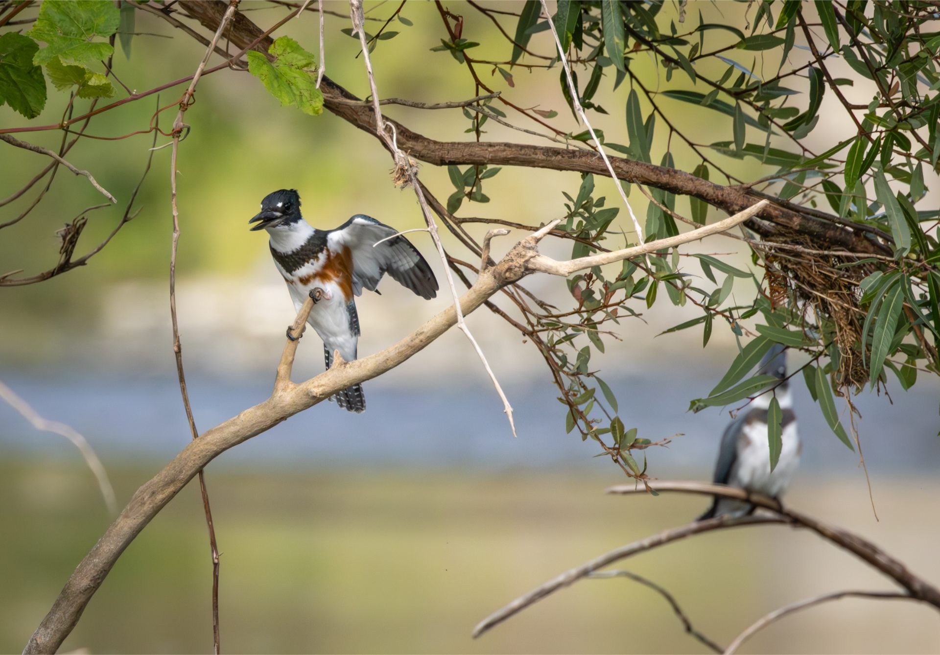 Belted Kingfishers are not social birds. They seldom interact except during breeding season and while raising young. They defend their domain against other Kingfishers, and the young, once capable of catching their own food, are left to find their own quarter mile or so of riverfront territory. In the past, I have seen youngsters playing at this same behavior, whatever it is.