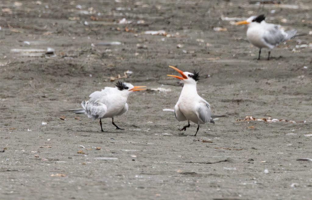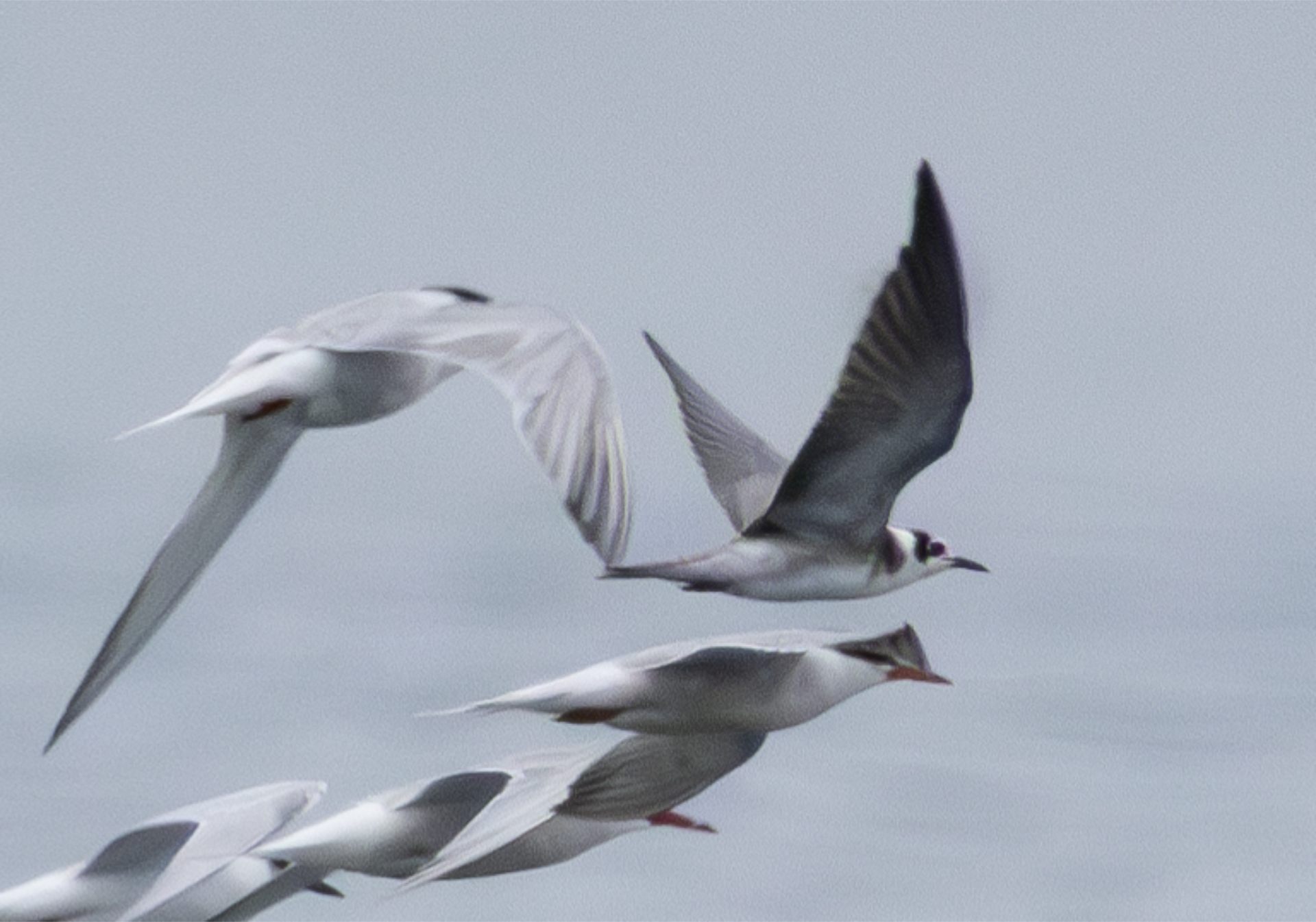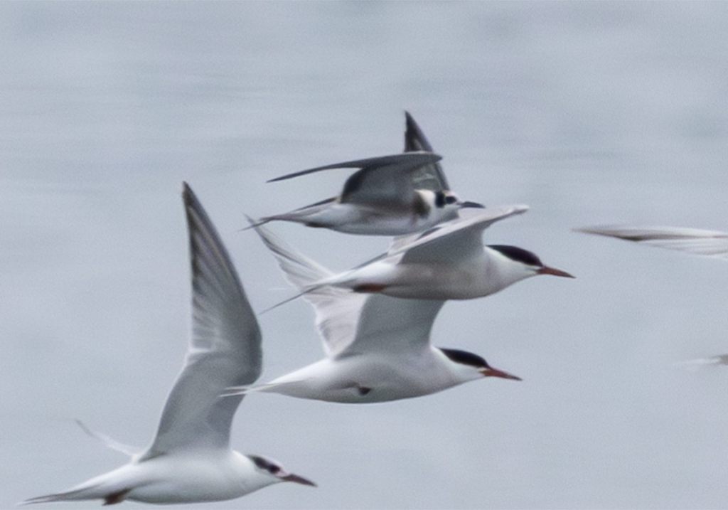 Common Terns are medium sized and are technically rare on this side of the North American continent, but a few of them each year are not unexpected. This year, there have been hundreds of them, making them close in number to the Elegants.