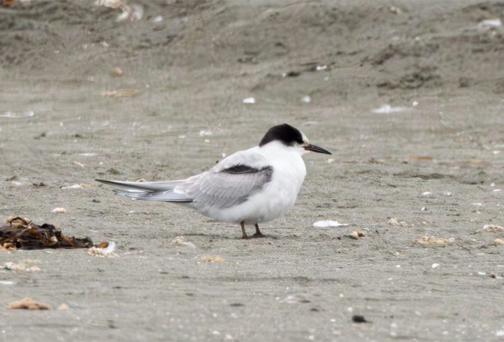 Forster’s Terns, also expected but technically rare here, can be told in the non-breeding September plumage by their isolated black eye patch which differs from most other tern species whose black cap recedes into a Wallace Shaun-like do, forming a black ring around the back of the head.