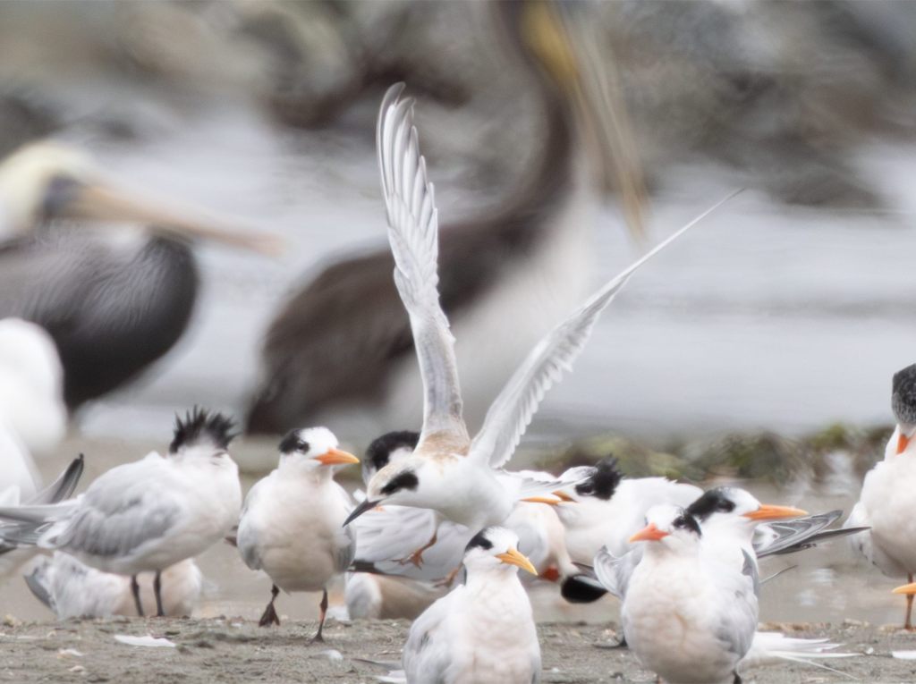 This video will give you an idea of the sounds and activity level of this huge group of several hundred terns. You will also see Brown Pelicans, Heermann’s Gulls, Western Gulls, and a couple of Marbled Godwits.