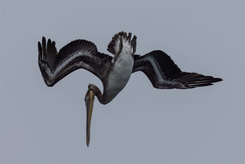 We saw this scene over and over: Pelicans diving into the water to catch fish were immediately surrounded by gulls and cormorants attempting to share in the catch. As insistent as the potential thieves were, the action never became hostile. The pelicans never shooed the other birds away and the other birds never became aggressive toward the pelicans.