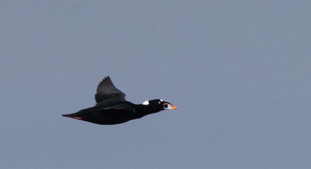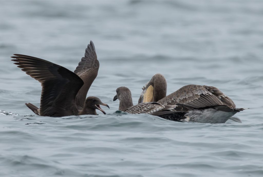 There were lots of Brown Pelicans around, mostly juveniles. Many had an entourage of juvenile Western and Heermann’s Gulls, hopeful of opportunistically stealing some of the prey gathered by the pelicans. Forster’s and Elegant Terns flew by a few times, as did numerous Brandt’s Cormorants and a couple Surf Scoters.