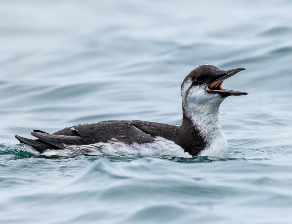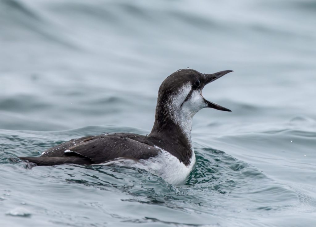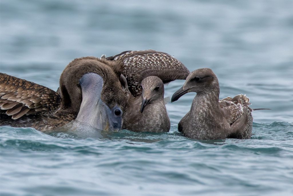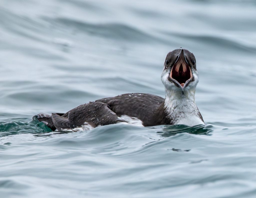 The first bird we encountered on the water was a Common Murre. In the same Auk family as the murrelet, these birds breed by the thousands along the Humboldt coast. We saw many adults and juveniles throughout the day, in a variety of plumages suggesting their age and molt status. We heard juveniles calling to parents, watched them dive and stay under for a long time, resurfacing improbably far away from where they dove.